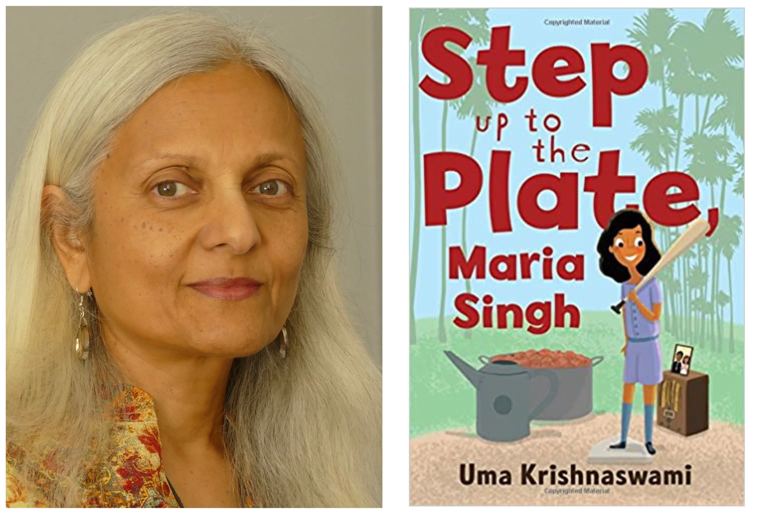 Grace Lin: Hello. I'm Grace Lin, children's book author and illustrator of many books, including the middle grade novel, When the Sea Turned to Silver and the picture book, A Big Moon Cake for Little Star. Today I'm here with Uma Krishnaswami, the author of the middle grade novel, Step Up to the Plate, Maria Singh. The chapter book, Book Uncle and Me and the picture book, Bright Sky, Starry City illustrated by Aimee Sicuro. Hi, Uma.
