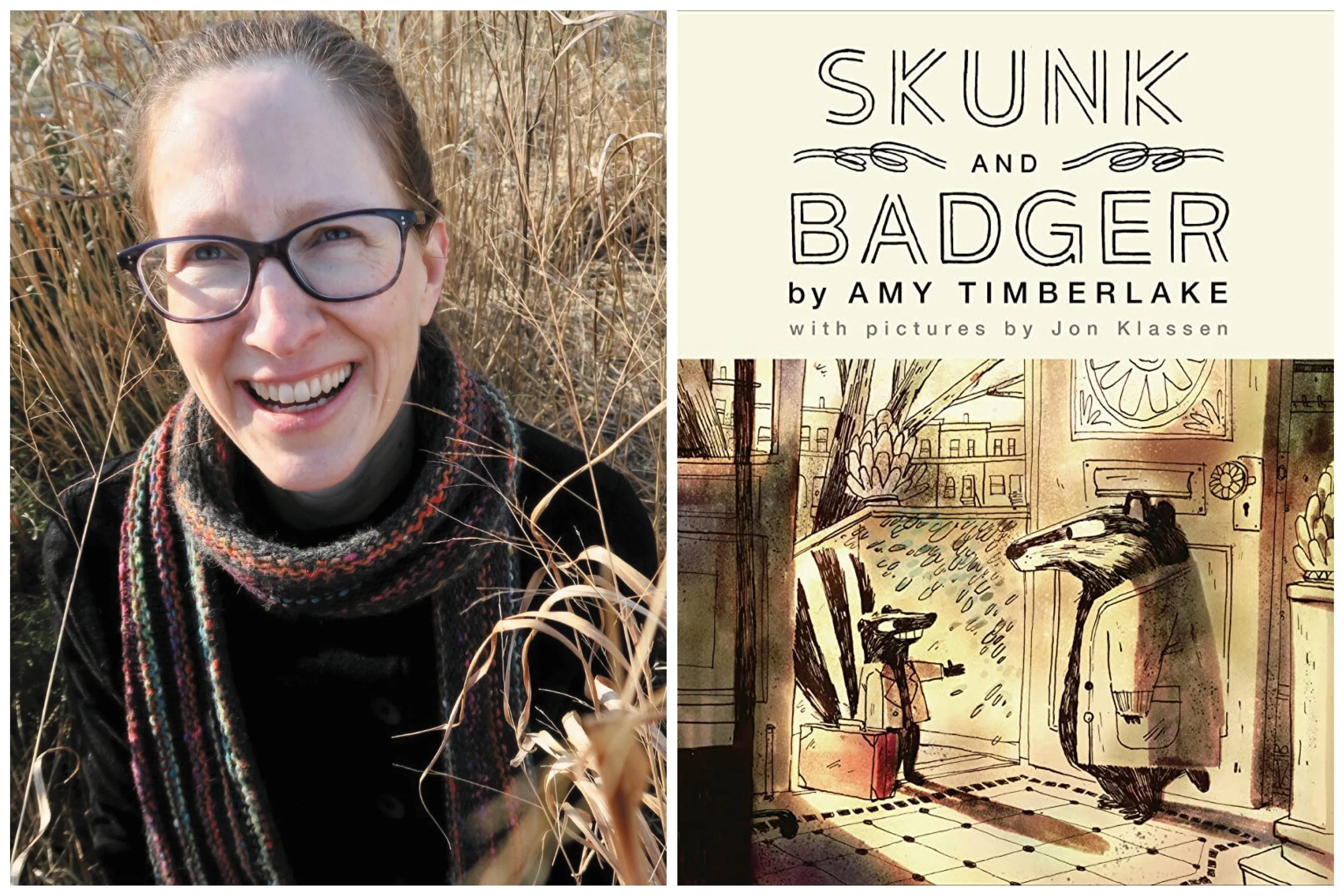 Amy Timberlake received a Newbery Honor, an Edgar, and a Golden Kite Award. She’s had books on the Indie Books Bestseller list, one book was Tattered Covers’ Book of the Year, and reviews have appeared in the New York Times Book Review, The Sunday Times, The Irish Times, Milwaukee Journal-Sentinel, Christian Science Monitor, People Magazine,The Sydney Morning Herald, and also on various radio programs and podcasts. It delights Amy that the Skunk and Badger stories are being translated into fifteen languages. Also, Chicago's Lifeline Theatre has adapted both One Came Home and The Dirty Cowboy for the stage. She's received residency fellowships from Hedgebrook, and The Anderson Center. Amy’s work is represented by Steven Malk at Writers House.