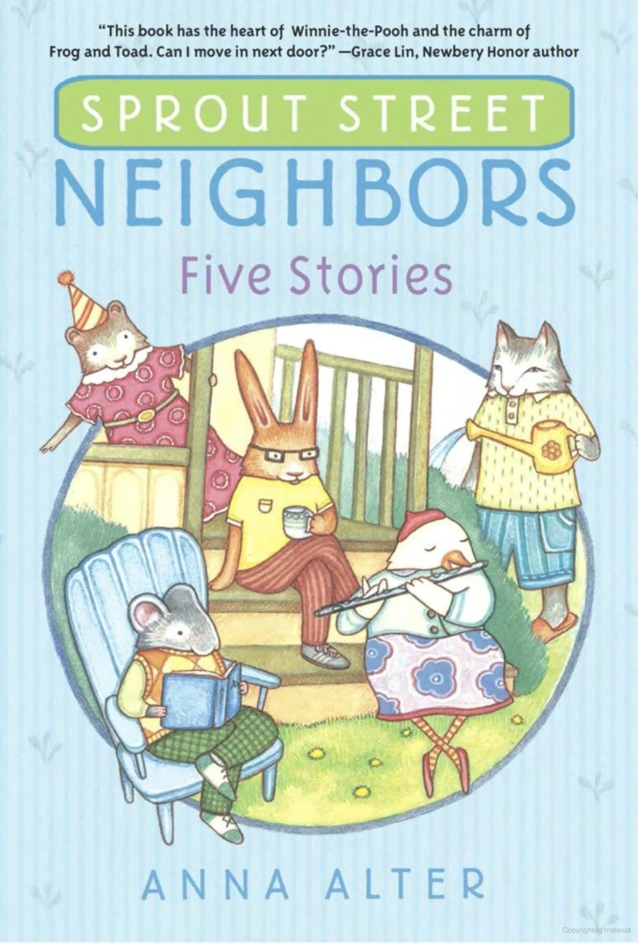 Hi my name is Dorrie and I am 8 years old. The book I would like to talk about is Sprout Street Neighbors: Five Stories by Anna Alter. This book is about 5 animal neighbors Henry, Wilbur, Violet, Emma, and Fernando. They live in an apartment each in their own room. They have to share walls with each other. It is difficult because Henry likes peace. But it can also be fun. I like this book because it's about different animals and they work together to survive living together.